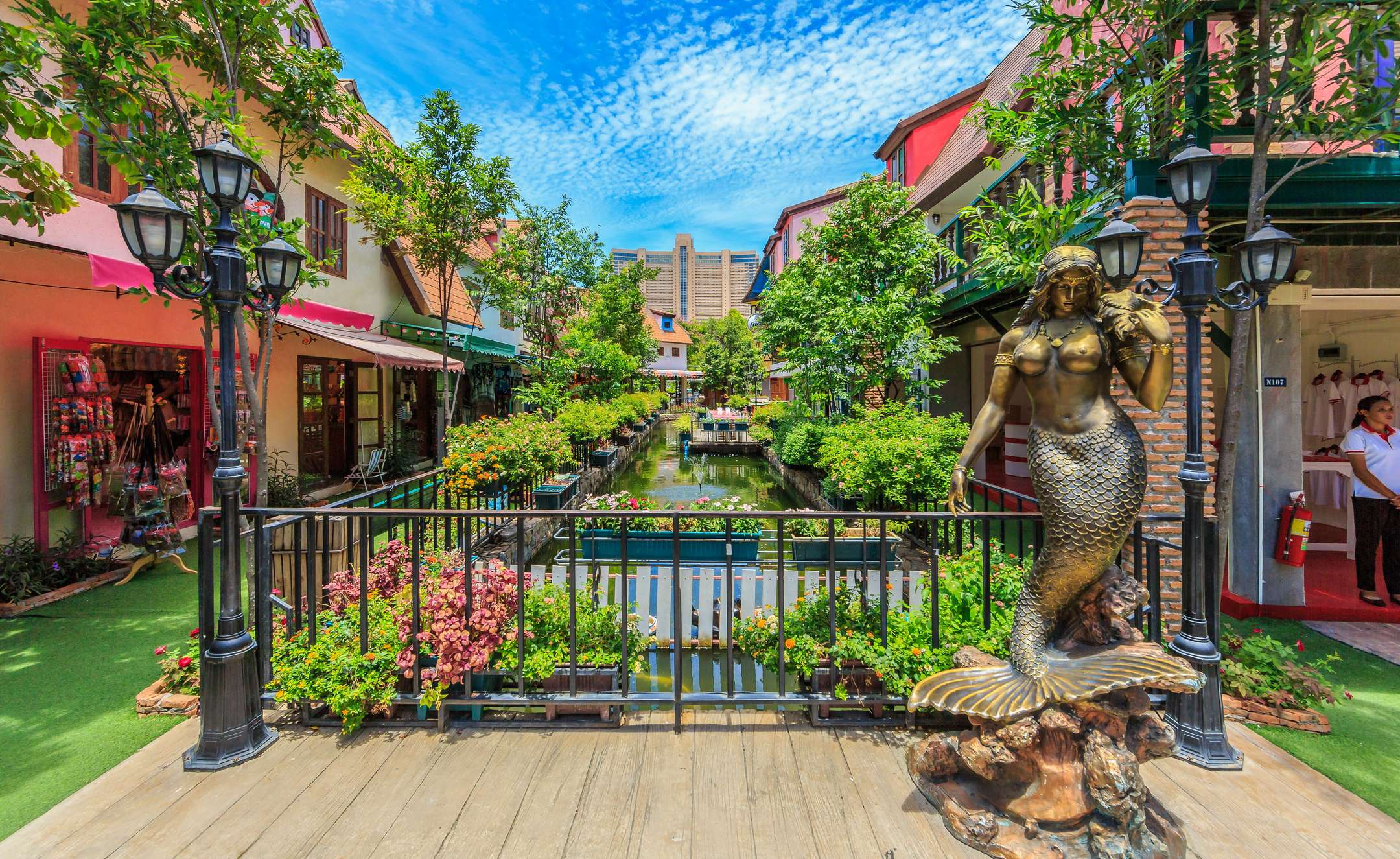Mimosa Pattaya, City of Love is also called "Little Venice" which creates an effect similar to that of the city of Colmar located at the border between France and Germany. The river cutting Mimosa in two halves just gives it the desired aesthetic look of the city of Colmar. The half-timbered architecture gives it a European style architectural look from the Renaissance period with its romantic ambience of charming pathways, lounging places, and its own canal. The half-timber houses are painted in bright and attractive colours giving them the feel of a European Renaissance Architecture.